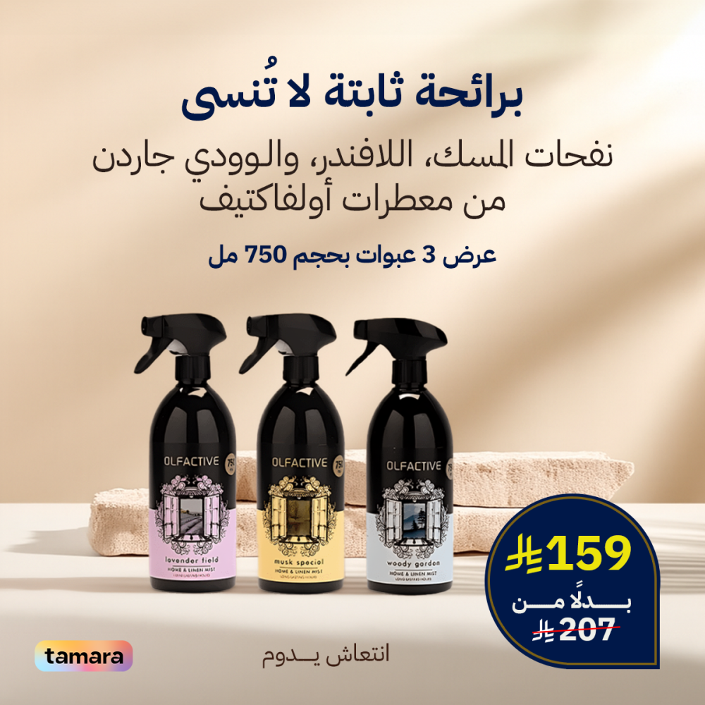 حول كل زاوية في مساحتك إلى ملاذ من الفخامة والراحة مع معطرات الجو والمفروشات من أُلفاكتيف المتوفرة لدى متجر محمود سعيد، استمتع بروائح مترفة تدوم طويلاً وتمنحك إحساسًا متجددًا بالانتعاش في كل مرة تدخل فيها المكان، لا تنتظر أكثر، واجعل من العطر توقيعًا خاصًا لمساحتك اليوم.